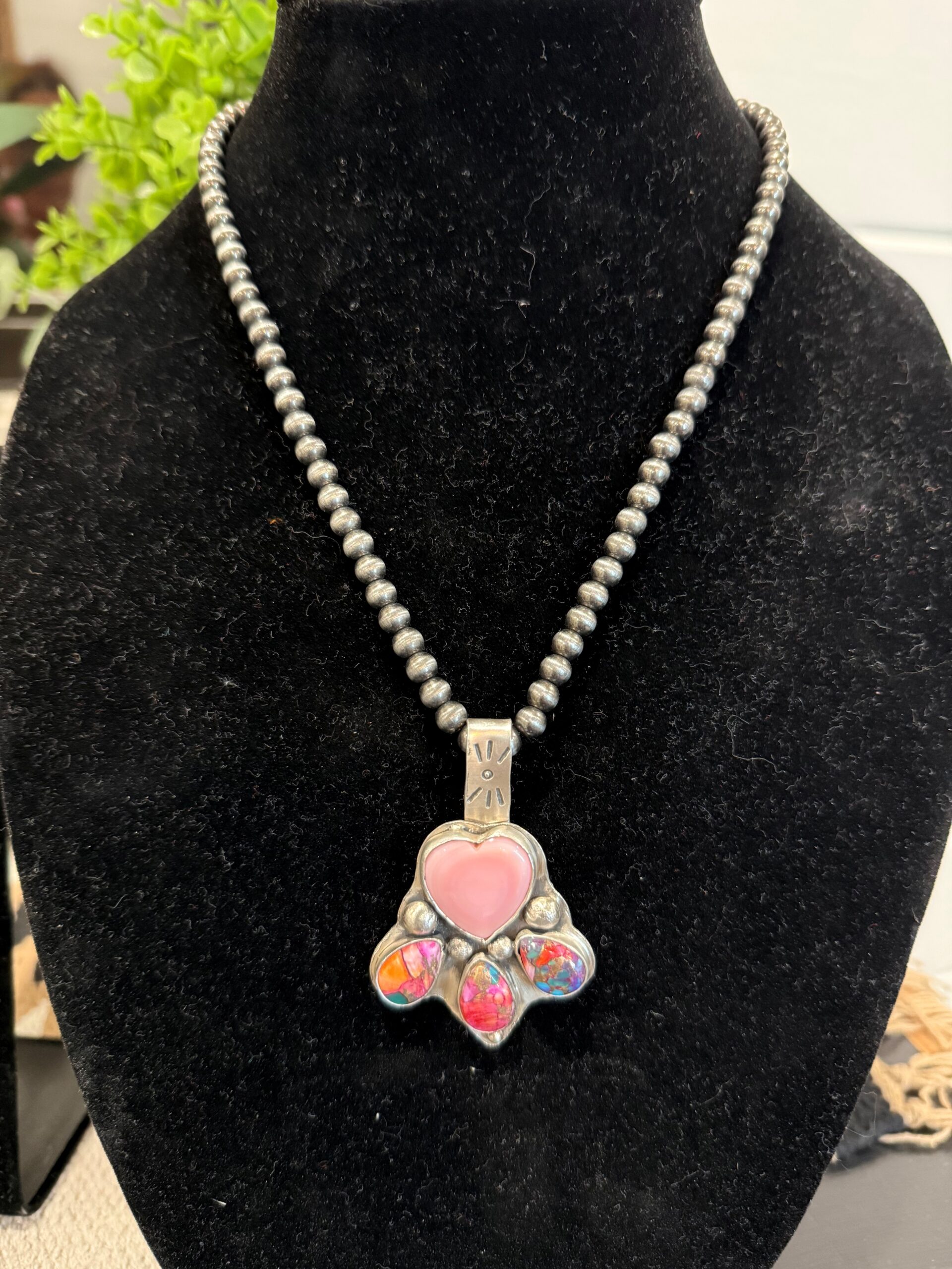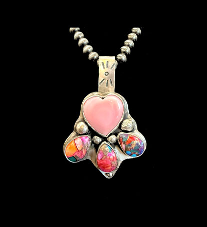 Our Pink Conch combines the beauty of the heart-shaped centerpiece and the three handcrafted stones. Created with the inspiration of love and harmony. This can be attached to a bracelet or necklace for a charming accessory.